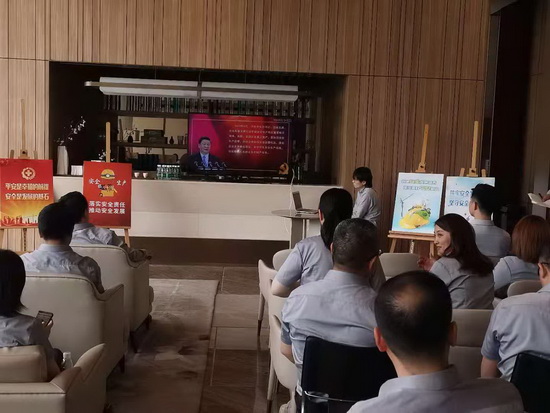 為(wèi)貫徹落實市(shì)安委辦《關于開(kāi)展2021年(nián)全市(shì)"安全生(shēng)産月(yuè)活動的(de)通(tōng)知(zhī)》文(wén")件(jiàn)精神要(yào)求,強化(huà)"人(rén)民(mín)至上(shàng)、生(shēng)命至上(shàng)"理(lǐ)念, 2021年(nián)5月(yuè↕)28日(rì)下(xià)午,緻豪地(dì)産在萬濠禧園售樓處大(dà)廳舉辦了(le)以"落實安全責任,推動安全發展"為(wèi)主題的(de)安全生(shēng)産月(yuè)啓動會(huì)。