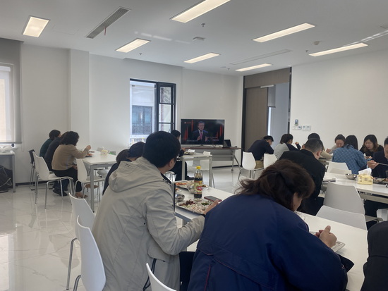"午餐課堂"學習(xí)內(nèi)容經過精心挑選,豐富多(duō)彩。有(yǒu)複旦大(dà)學中國(guó)研究院張維為(wèi)教授主講的(de)《聚焦二十大(dà)↔:情懷與擔當》,全面深入宣傳貫徹二十大(dà)精神;有(yǒu)《共産黨人(rén)精神譜系》、《國(guó)企姓公不(bù)姓私》等黨員(yuán)大(dà)會(huì)的(de)部分(fēn)學習(xí)視(shì)頻(pín),讓全體(tǐ)員(yuán)工(gōng)了(le)解黨組織,增強黨組織的(de)吸引力;有 (yǒu)《新聞聯播》傳播實時(shí)國(guó)際國(guó)內(nèi)要(yào)聞;有(yǒu)《屠呦呦傳》、《雜(zá)≈交水(shuǐ)稻之父袁隆平》,走近(jìn)時(shí)代楷模,汲取奮鬥力量;有(yǒu)《退休員(yuán)工(gōng)照(zhào)片合集》,深情送别退休員×(yuán)工(gōng),讓大(dà)家(jiā)深深感受集體(tǐ)的(de)溫暖。"午餐課堂"每日(rì)學習(xí)內(nèi)容提前在微(wēi)信群發布,方便随時(sh'í)學習(xí)。充分(fēn)利用(yòng)午餐時(shí)間(jiān),在食堂現(xiàn)場(chǎng)準時(shí)播放(fàng)學習(xí)視(s₹hì)頻(pín)。學習(xí)內(nèi)容将廣泛征求員(yuán)工(gōng)意見(jiàn),根據實際學習(xí)需求進行(xíng)不(bù)斷豐富和(hé)調整。