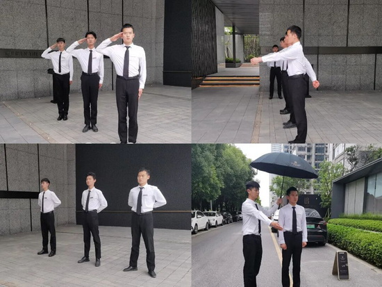 指揮停車(chē)要(yào)"零誤差":提前觀察車(chē)輛(liàng)尺寸,預留足夠開(k→āi)門(mén)空(kōng)間(jiān),雨(yǔ)天撐傘時(shí),傘沿永遠(yuǎn)傾向客戶,自(zì)己半邊肩膀淋濕也(yě)不(bù)在意;